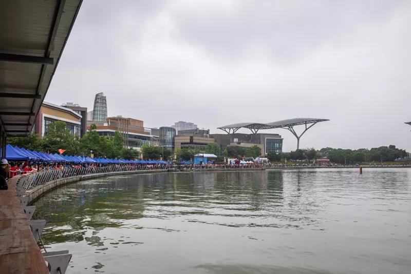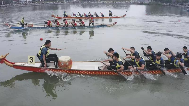 現(xiàn)場觀眾圍湖觀戰(zhàn),吶喊聲、鼓聲、加油聲響成一片