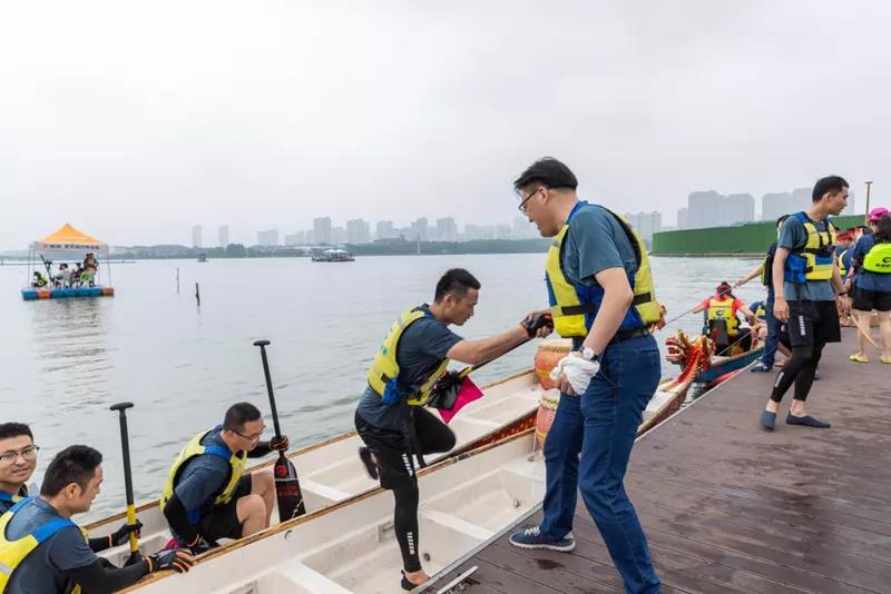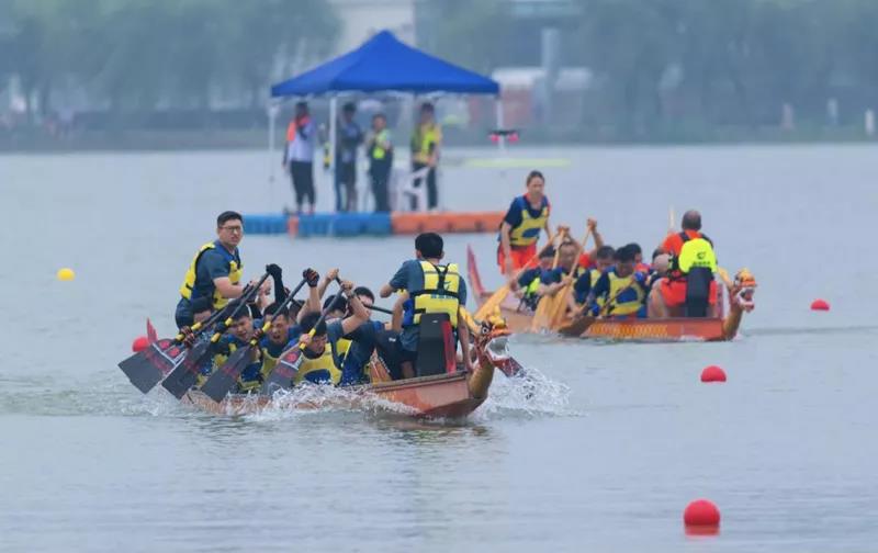 本次競賽以傳統(tǒng)200米直線競速形式,雙賽并舉,需經(jīng)歷至少5輪激烈競爭。上午的賽程是職工部龍舟賽預(yù)賽、決賽以及全民健身龍舟賽預(yù)賽。雪浪環(huán)境龍舟隊(duì)首先代表濱湖區(qū)總工會(huì)出征職工部龍舟賽并交出預(yù)賽第 一、決賽第四名的亮眼成績單。到了全民健身龍舟賽時(shí),面對(duì)多支老牌專 業(yè)龍舟代表隊(duì)且體力嚴(yán)重超支的情況下,雪浪環(huán)境龍舟隊(duì)依然沉著應(yīng)戰(zhàn),以小組第 一的成績跳過復(fù)賽,直接闖入下午的半決賽。